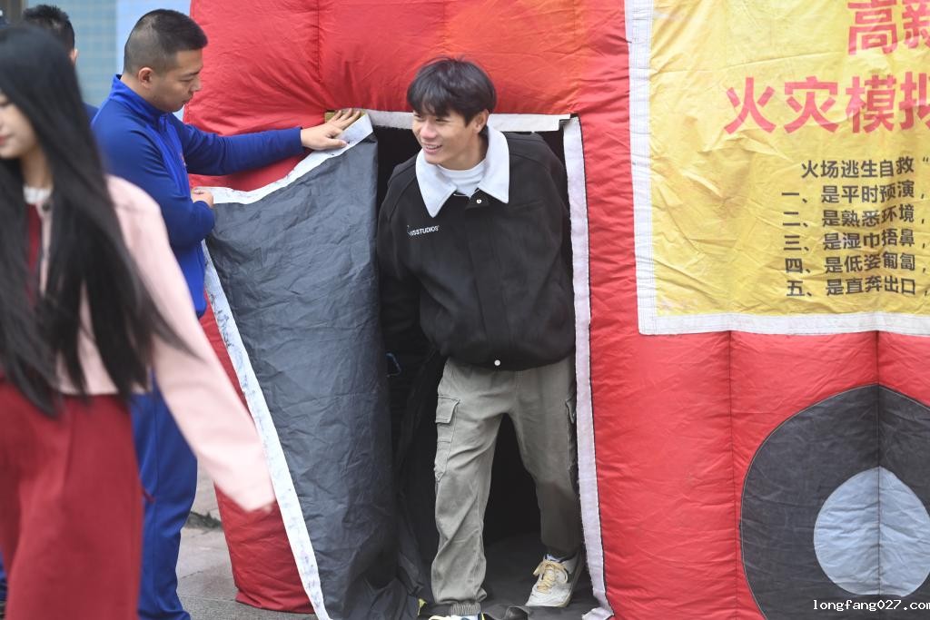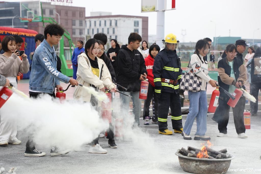 技能演练环节,消防官兵向师生们现场演示了各类消防器材的使用方法,讲解消防知识,并让学生实际操作灭火器扑灭模拟火源,进行逃生帐篷体验。